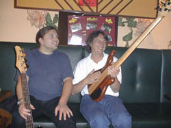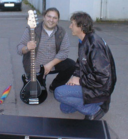 Armin Klopfer lernte ich durch eine Anzeige im Internet kennen. So wie ich, suchte auch er einen AmStd. Fender Jazz Bass. Bislang haben wir beide keinen LH-Jazz gefunden. Armin spielt in einer schwäbischen Blues Band und lebt in einer wundervollen Gegend. Dabei studiert Armin in Ulm, kommt aber am Wochenende nach Dillingen. Wir waren von Dillingen mächtig beeindruckt. Wenn es mal ein Lefty-Treffen geben wird - dann dort!! Armin Klopfer came to know me from an ad on the internet. Like me, he was looking for an American standard Fender Jazz Bass. For a long time, neither of us had found a left-handed model. Armin plays in a German-dialekt ("Schwaebischen") blues band and lives in a wonderful region. There Armin studies in the town of Ulm and comes to Dilligen on the week-end. Dillingen left us with a powerful impression. If ever a Lefty encounter takes place, that's the place to be! |