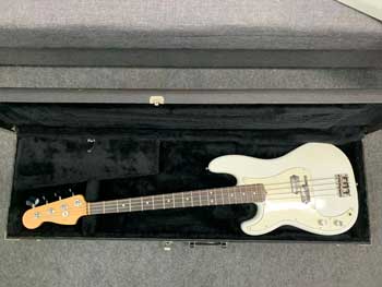 Fender American Pro Precision Bass RW, Olympic White GAUCHER from 2017, sold with all its Fender accessories (soft cloth, various keys, profiled SKB